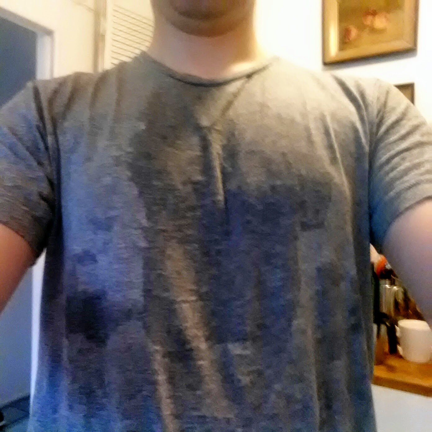 Inspired by a particularly good feeding this morning, I strapped myself onto Dad and created my lastest masterpiece. This self-portrait represents my journey to three different drug stores to find the right diapers and some really strong coffee. This piece is my greatest self-expression yet.